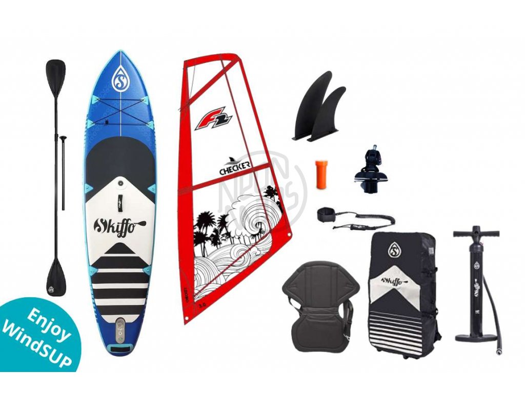Nafukovací paddleboard Skiffo WS Combo 10'4'' je skvelou kombináciou paddleboardu, kajaku a windsurfu s nosnosťou 130 kg.