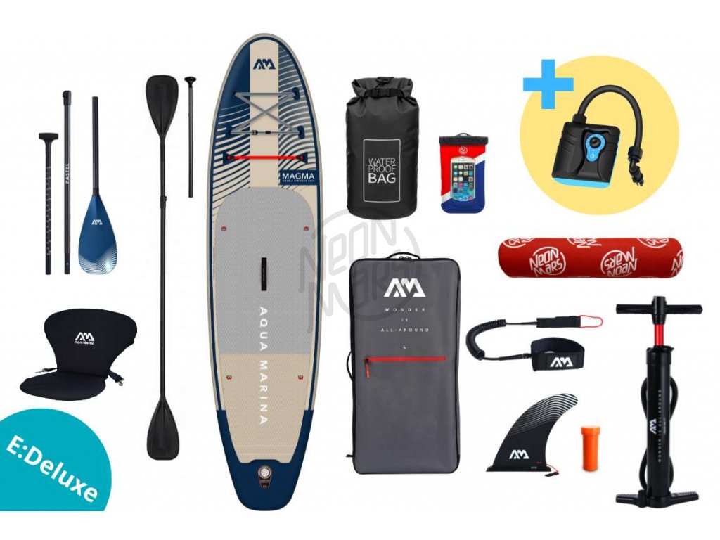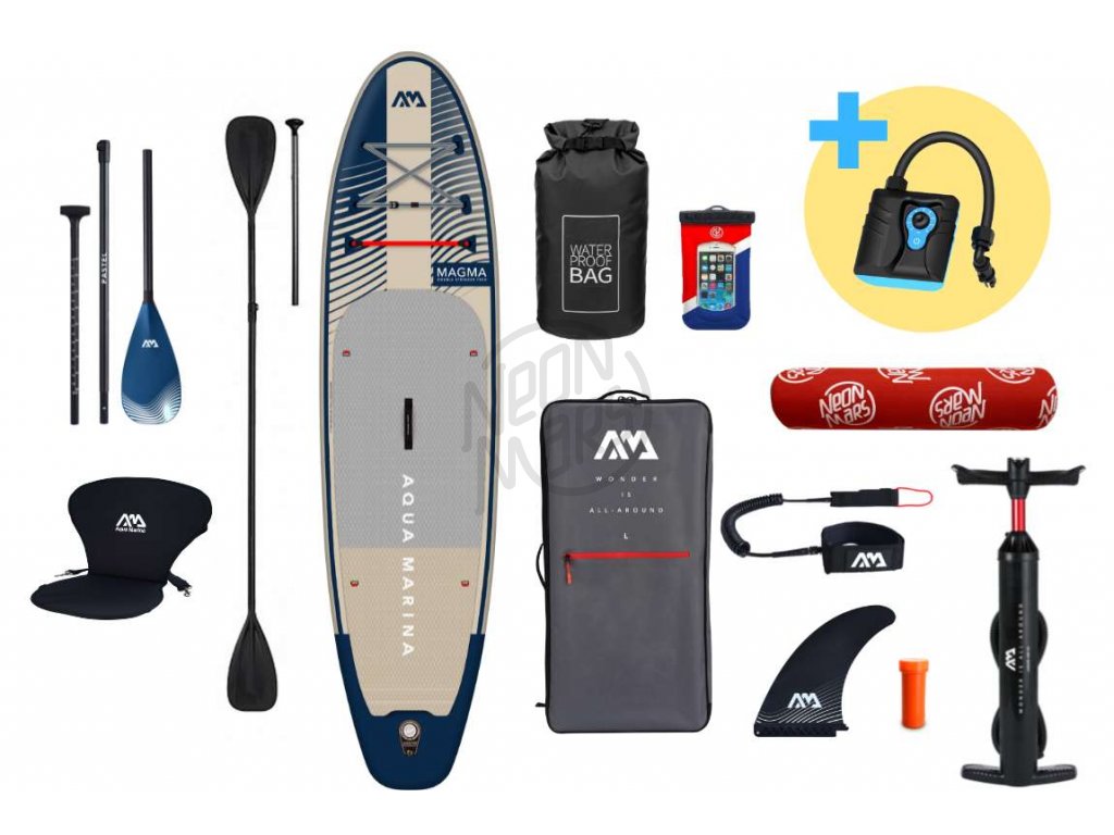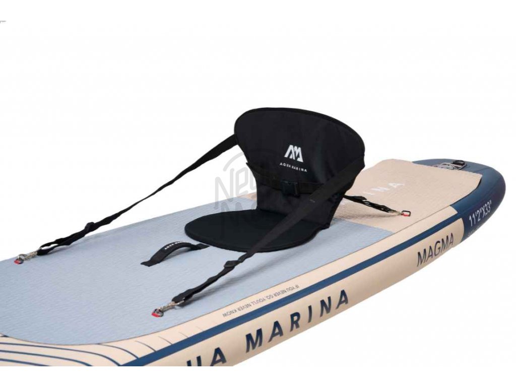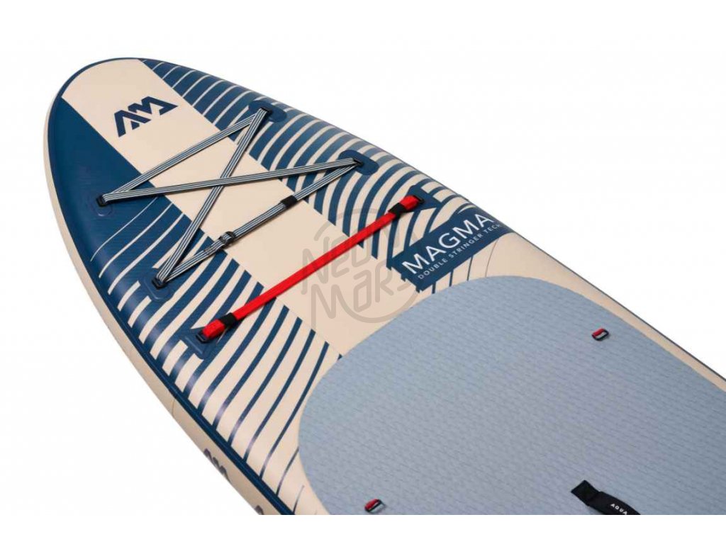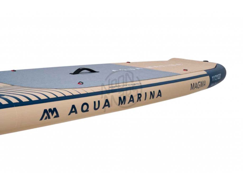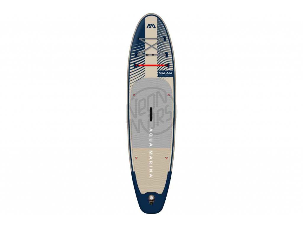 Najnovší model paddleboardu Aqua Marina Magma je navrhnutý do širokého spektra podmienok a pre každý typ jazdca. Navyše prešiel úpravou tvaru chvostu, čo ho urobilo ešte stabilnejším. Pohodlný Diamond brúsený povrch s pieskovým vlnením poskytuje ešte väčší konfort a priľnutie. Novinkou je aj takzvaný Red Strap Bungee Systém, ktorého súčasťou je ikonický červený pásik a teraz prichytí ešte viac nákladu. Tento univerzálny paddleboard využiješ aj ako kajak vďaka možnosti jednoduchého pripnutia kajakovej sedačky. Pohodlné prenášanie zabezpečí neoprénová rúčka v strede paddleboardu. Súčasťou paddleboardu Aqua Marina Magba je aj nové Carbon Hybrid pádlo, ktoré je o 14% ľahšie. Chystanie na vodu ti uľahčí patentovaná SAFS plutvička, ktorú iba zaklikneš a môžeš vyraziť. Všetky nové dosky Aqua Marina sú vybavené novým ekologickejším batohom CIRCUPACK, ktorý je vyrobený zo 100% plastového odpadu.