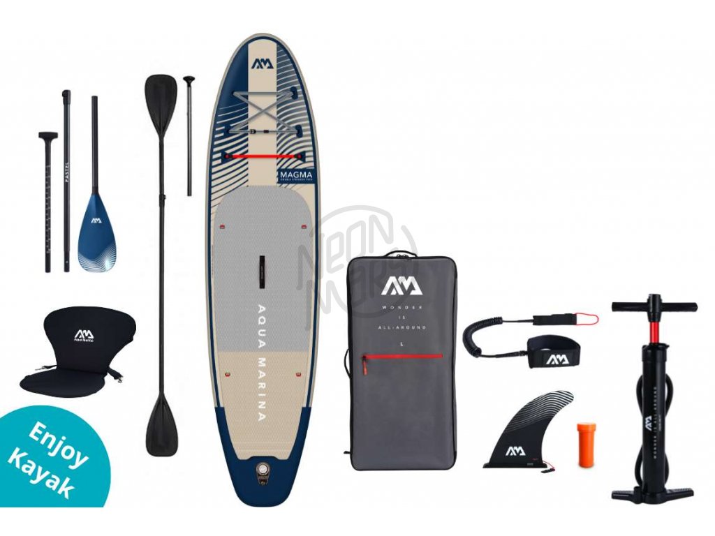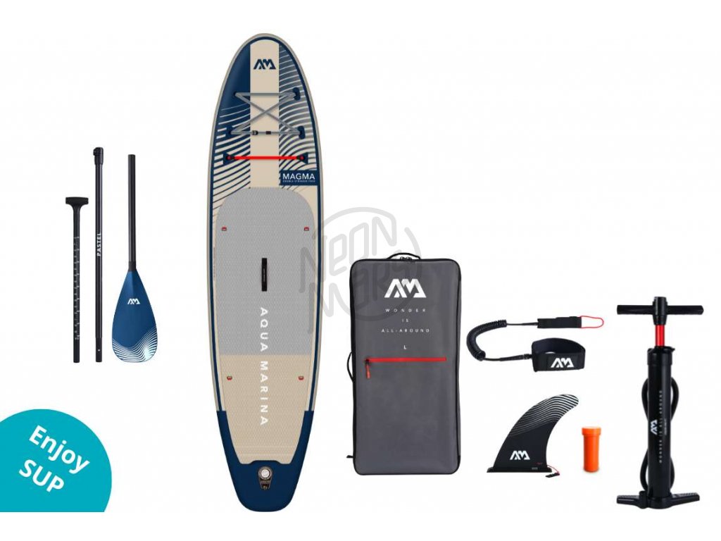 Aqua Marina Magma patrí do kategórie univerzálnych all-round nafukovacích paddleboardov. Vďaka svojmu všestrannému tvaru zvládne jazdu v akýchkoľvek podmienkach. Zober ho na jazero za domom, kde sa decká perfektne vyšantia, vydaj sa s ním na dobrodružný splav na rieku a nezabudni si ho zobrať ani na rodinnú dovolenku. Pre väčšiu istotu na mori nájdeš v balení aj poistný leash na nohu, ktorý teraz pripojíš o zosilnený D-ring z nehrdzavejúcej ocele. Vďaka svojej konštrukcii a nízkej váhe sa s ním jednoducho cestuje. So všetkým príslušenstvom ho rýchlo a ľahko zbalíš do prepravného batohu.