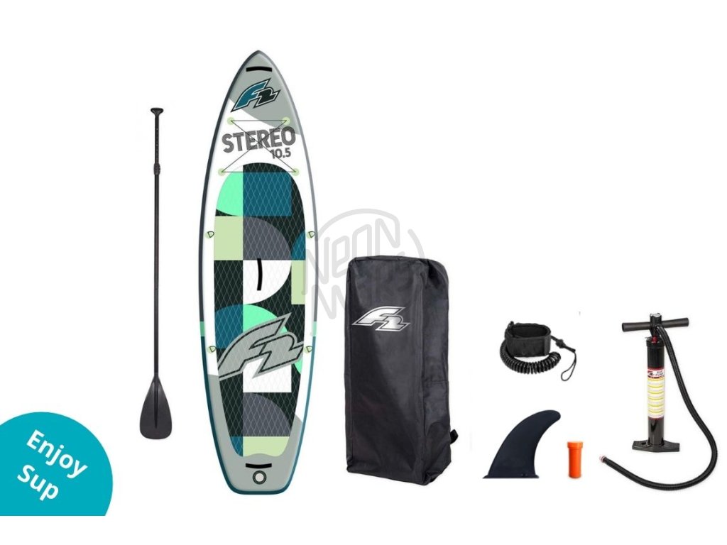Nafukovací paddleboard F2 Stereo 10'5" Grey je skvelo vybavený allround SUP, vhodný pre začiatočníkov a rekreačných jazdcov. Šírku 32,5" oceníš najmä ak máš problém so stabilitou alebo ak hľadáš komfortnú dosku na zábavu i na splav. Nosnosť paddleboardu je 120 kg, teda hravo si poradí i s ťažším jazdcom alebo ak chceš povoziť na paddleboarde frajerku či dieťa. Či už budeš pádlovať sám alebo budeš mať spoločnosť, komfort počas státia ale i sedenia či ležania na doske zabezpečí pohodlná mäkká EVA s výbrusom diamond skin.